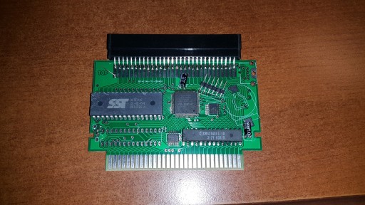Kartridż na układach scalonych, wykonany wg. mojego autorskiego projektu, bazujący na NESowym GameGenie (który nigy nie wyszedł w wersji na konsole 60pin typu Famicom/Pegasus).