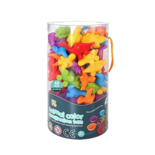 Figurki dinozaurów do nauki liczenia i kolorów gra sorter montesorri 48 el.