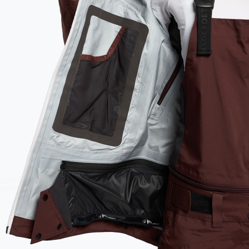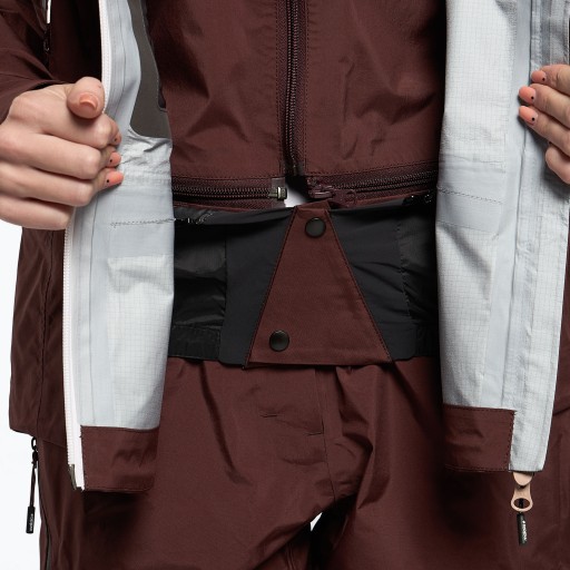U dołu kurtki zamontowano pas śniegowy, który skutecznie chroni użytkownika przed przedostawaniem się śniegu do wnętrza kurtki. Całkowicie uszczelnione szwy chronią przed przedostawaniem się wilgoci do środka. Kurtka posiada funkcjonalne ściągacze w talii, które umożliwiają dostosowanie produktu do własnych potrzeb. Elastyczna wstawka przy mankietach pomaga uniknąć wpadania śniegu i wody do rękawów.