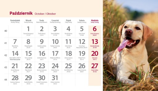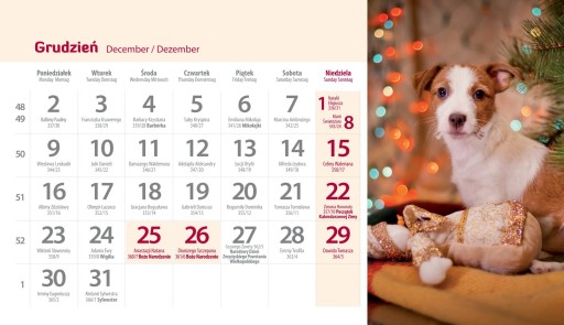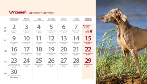 Każdy miesiąc jest ozdobiony zdjęciem innych piesków: