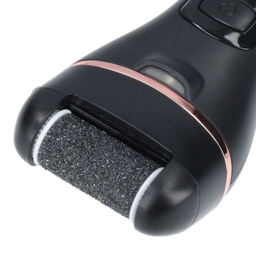 Pilnik elektryczny do stóp przeznaczony do usuwania martwego naskórka. Urządzenie posiada dwustopniową regulację prędkości, co pozwala dostosować intensywność ścierania do indywidualnych potrzeb. Wyposażone jest w wyświetlacz LCD pokazujący poziom naładowania oraz wybrany tryb prędkości. Pilnik dodatkowo posiada lampkę, oświetlającą miejsce, na którym wykonywany jest zabieg. W zestawie znajdują się trzy wymienne końcówki, dostosowane do różnych rodzajów skóry. Zestaw zawiera dodatkowe wyposażenie.