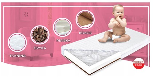 - Wymiary materaca: 120cm x 60cm - nadaje się do wszystkich standardowych łóżeczek