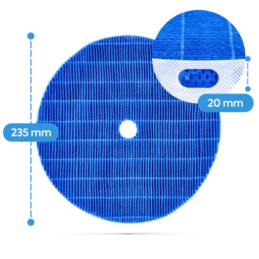 ✅ Okrągły filtr nawilżający - zwiększa wilgotność powietrza w pomieszczeniu.
