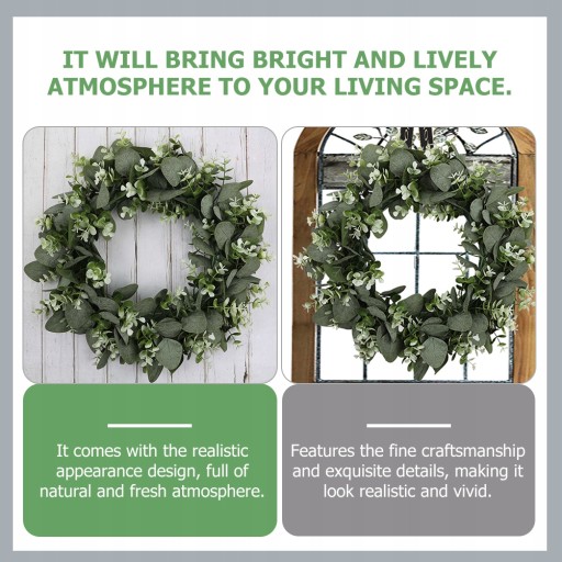Jasny kolor i delikatna konsystencja, kreatywne dekoracje z liści eukaliptusa, ten eukaliptus pozostawia zielony wieniec sprawia, że ludzie są przyjemni wizualnie.