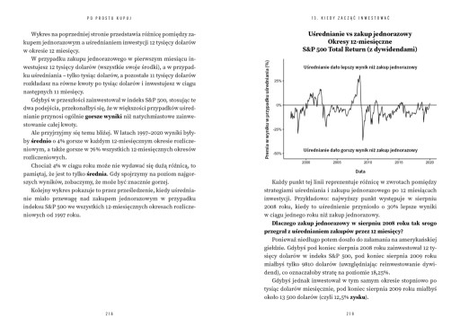 ? Dlaczego lepiej zacząć inwestowanie wcześniej niż później? ? Dlaczego lepsze ceny zakupu w przyszłości są prawdopodobnie (i dlaczego jednocześnie nie warto na nie czekać)? ? Czy inwestować od razu czy stopniowo? ? Jak często uśrednienie wygrywa, a jak często przegrywa z zakupami jednorazowymi? ? Jak to wygląda dla aktywów innych niż amerykańskie akcje? ? A co z ryzykiem? ? Aspekty psychologiczne uśredniania i zakupów jednorazowych