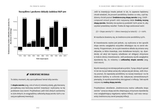 ✅ „Po prostu kupuj” to książka wypełniająca przestrzeń pomiędzy „Finansowym ninja” a „Atlasem Pasywnego Inwestora”. Daje komplet danych, faktów i argumentów przemawiających za tym, dlaczego pasywne, niskokosztowe i dobrze zdywersyfikowane inwestowanie w aktywa z całego świata (poprzez ETF-y) jest świetnym rozwiązaniem dla zdecydowanej większości osób. Zwłaszcza tych, które nie chcą być zawodowymi inwestorami, a jedynie chcą skutecznie chronić zgromadzony majątek przed inflacją i sukcesywnie pomnażać jego wartość – z minimalnym zaangażowaniem własnym.