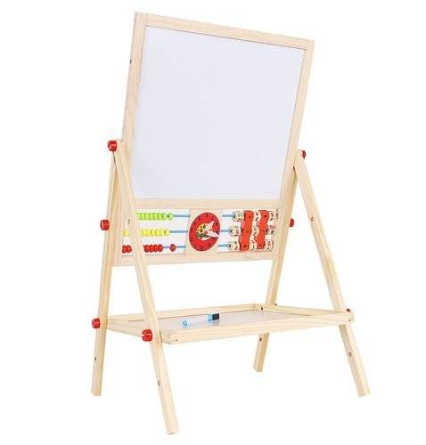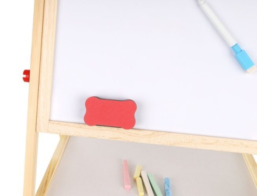 Umożliwia dziecku malowanie kredą po czarnej stronie tablicy oraz malowanie mazakiem po białej stronie.