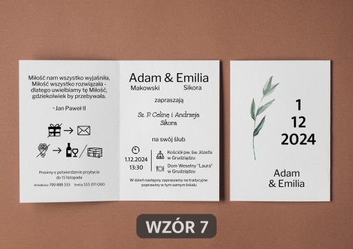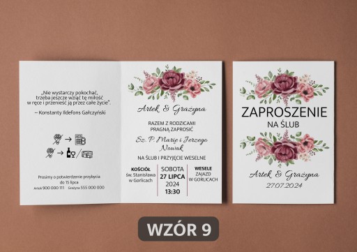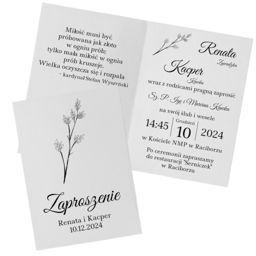 - Szerokość zaproszenia po rozłożeniu: około 21 cm