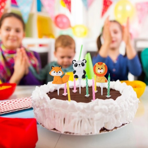 Dołącz różne urocze nakładki na tort z kreskówek, takie jak żyrafa, słoń, panda, lew i lis.