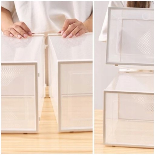 POJEMNIK ORGANIZER PUDEŁKO MOCNE NA BUTY DO PRZECHOWYWANIA Z KLAPĄ STOSY