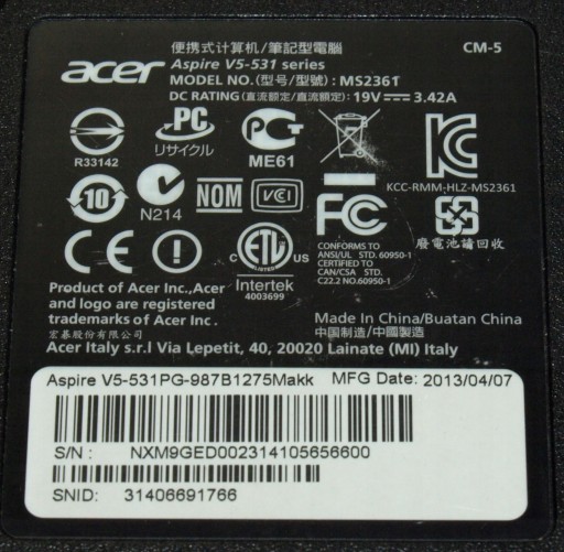 pozyskana z demontażu laptopa: Acer V5-531PG