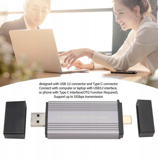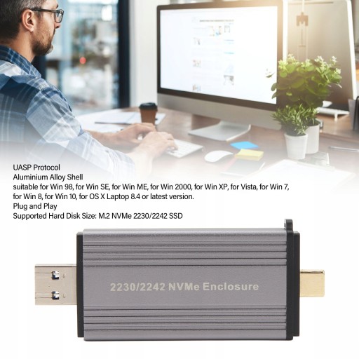 2. Zaprojektowana dla dysków SSD 2230/2242: Ta obudowa dysków SSD NVMe ze złączem USB 3.2 i typem C jest typu plug and play i obsługuje dyski SSD o rozmiarach 2230/2242.