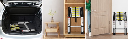 ✔ ✔ ✔ konstrukcja drabiny przedłużalnej, taka jak wędka wędkarska, może być teleskopowana, lekka, mała, złożona, złożona i ograniczona do przenoszenia i przechowywania, może być przechowywana w szafie, pod szafką, pod warunkiem lub w bagażniku samochodu, w zasadzie nie dotyczy miejsca .