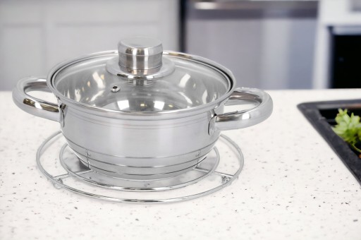 ✅ Bezpieczeństwo - Nóżki zapewniają stabilność podstawki, chroniąc blat kuchenny przed potencjalnymi uszkodzeniami.