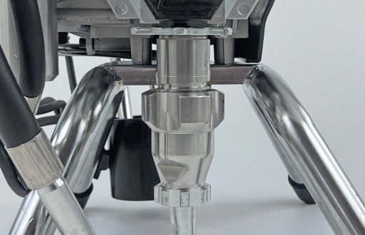 - Szybka wymiana pompy farby — pompę farby można łatwo wymienić oraz szybko wyczyścić. Wymienna pompa farby zapewnia ciągłość pracy nawet w przypadku konieczności naprawy tłoka lub uszczelnień.