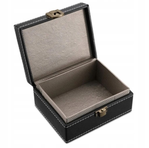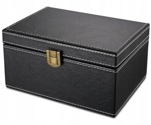 Specyfikacja: Rozmiar zewnętrzny 17cm x 12 cm x 9,5 cm Kolor wiodący: Czarny Wykonania: skóra ekologiczna z przeszyciami Pudełko jest duże i umożliwia schowanie nawet telefonu do środka