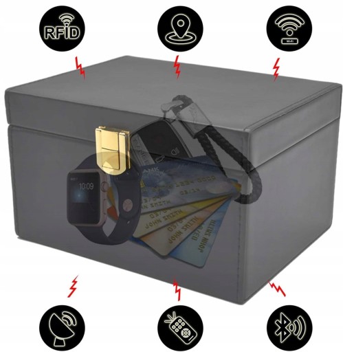 Pudełko RFID, zwane również klatką Faradaya, to niezbędny sprzęt dla posiadaczy aut, otwieranych za pomocą systemu Keyless Go. Box na kluczyki samochodowe, zapewnia pełną ochronę oraz bezpieczeństwo Twojego pojazdu. Kluczyki typu Keyless Go pozwalają na wygodne, zdalne otworzenie samochodu, jednak jednocześnie są podatne na włamania i kradzież sygnału. Specjalnie zaprojektowane etui, blokuje przekaz fal radiowych między kluczykami a samochodem, tym samym zabezpieczając go przed kradzieżą przez potencjalnego złodzieja. Pudełko RFID posiada precyzyjnie zaprojektowaną budowę, i zostało wykonane z wytrzymałych materiałów, które razem z tkaniną ekranującą doskonale blokują sygnał kluczyków wewnątrz akcesorium. Produkt posiada podwójną warstwę materiału blokującego sygnał w szerokim zakresie częstotliwości, dzięki czemu jest skuteczny w przypadku kluczyków wszystkich marek samochodów. Klatka Faradaya blokuje sygnały wysyłane przez kluczyki z opcją start, sygnał GPS, sygnał Wi-Fi, sygnał Bluetooth, GSM) Takim pudełkiem można zabezpieczyć karty płatnicze. Pudełko może być użyte aby zablokować wysyłane fale przez różne urządzenia m.in telefony komórkowe. DOSKONAŁA OCHRONA ANTYKRADZIEŻOWA – najwyższa jakość materiałów ekranujących naszego produktu zapewni Ci bezpieczeństwo oraz pozwoli ochronić Twoje cenne przedmioty (np. kluczyki samochodowe, portfel, telefon czy karty płatnicze) izolując je od wpływu niepożądanych sygnałów.