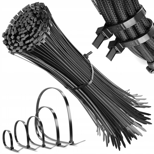 Opaski zaciskowe 4,8 x 300 mm, w kolorze czarnym, pakowane po 100 szt. Przeznaczone są do łączenia wiązek kabli elektrycznych, przewodów, rurek, węży lub też do szybkich doraźnych naprawach. Proste w montażu. Posiadają dużą odporność na zrywanie. Dostępne są w wielu rozmiarach oraz kolorach. Gęste ząbki na całej długości pozwalają na precyzyjne dopasowanie pętli opaski do rozmiaru wiązki. Opaski możemy zaciskać ręcznie lub za pomocą specjalnego przyrządu.