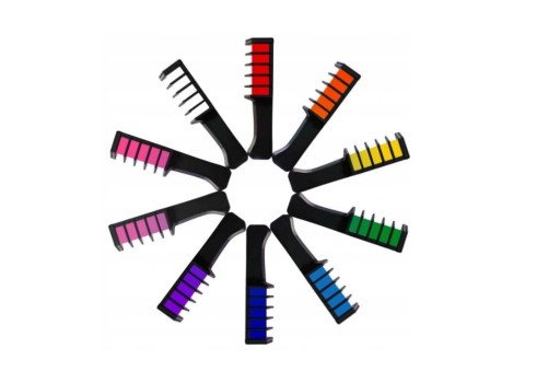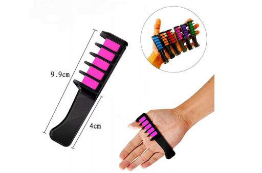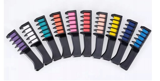 Grzebień z kredą farbującą to idealne rozwiązanie. Kreda rozpuszcza się w wodzie przez co łatwo się zmywa. Niezwykłe kolory dodadzą Ci super wyglądu czy to na wyjście czy na co dzień!