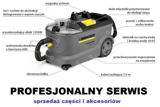 Przedmiotem sprzedaży jest komplet 5 szt. uszczelek i podkładka sprężynująca . Jest to zestaw przeznaczony do samodzielnej naprawy ssawki tapicerki odkurzacza piorącego KARCHER Puzzi