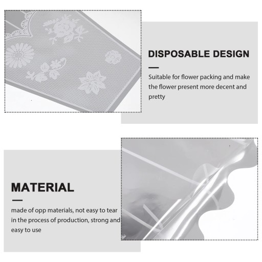 Cechy Kolor: jak pokazano Materiał:Przeciw Rozmiar: 45,00X28,00X10,00 cm/17,68X11,00X3,93 cala Jednorazowy torby na kwiaty są wykonane z materiałów opp, niełatwych do rozdarcia proces produkcji, mocny i łatwy w użyciu. Wypełnij bukiet kwiatów w tych torebkach, aby wyrazić szczerą emocjonalną ekspresję w sercu. Dobry jako wyjątkowy prezent dla członków rodziny lub przyjaciół, zaimponuj im znacznie bardziej. Nadaje się do pakowania kwiatów i sprawia, że prezent kwiatowy jest bardziej przyzwoity i ładny. Ta torba jest bardzo dekoracyjna. Wystarczająco dużo toreb do pakowania kwiatów i możesz udostępniać torby do pakowania kwiatów znajomym.