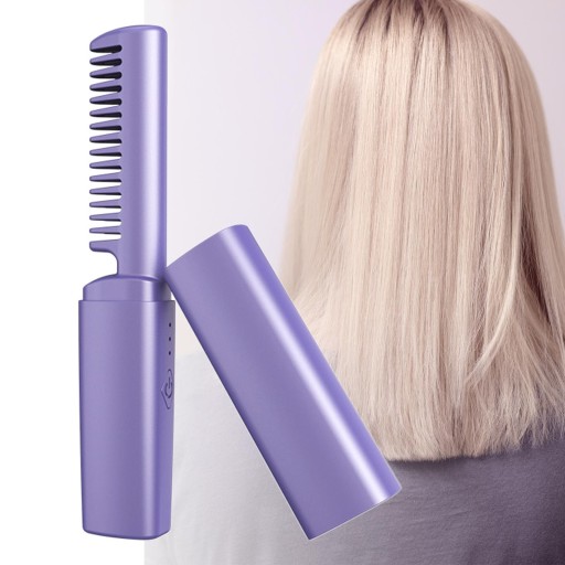 Bezprzewodowa szczotka do prostowania włosów Podgrzewany grzebień do prostowania włosów dla kobiet i mężczyzn Fioletowy