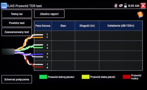 - Reflektometr TDR: Wykrywanie i lokalizacja miejsca przerwania kabla (tylko UTP)