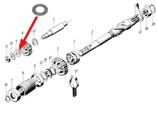 podkładka dystansowa przed kołem zębatym 16z na wałku pośrednim