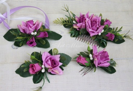 Można również dokupić do kompletu przypinkę do butonierki oraz mniejszy i większy grzebyk w takim samym stylu.