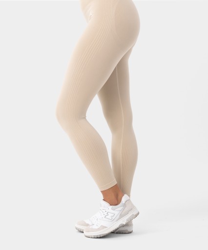 LEGGINSY SPORTOWE JASNO BEŻOWE WYSOKI STAN MODELUJĄCE BIEGANIE - M