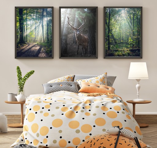 СОВРЕМЕННЫЙ НАБОР ИЗ 3 КАРТИН В РАМКЕ ГОСТИНАЯ СПАЛЬНЯ ТОЛСТАЯ РАМКА ЛЕСНОЙ ОЛЕНЬ