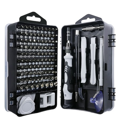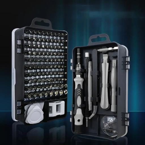 Rozbudowany zestaw precyzyjnych narzędzi aż 115 elementów, 98 wkrętaków oraz wiele innych przyborów do profesjonalnych napraw. Został stworzony z myślą do otwierania lub naprawiania telefonów, tabletów, zegarków, nawigacji, kamer, laptopów i wszystkich innych urządzeń RTV AGD