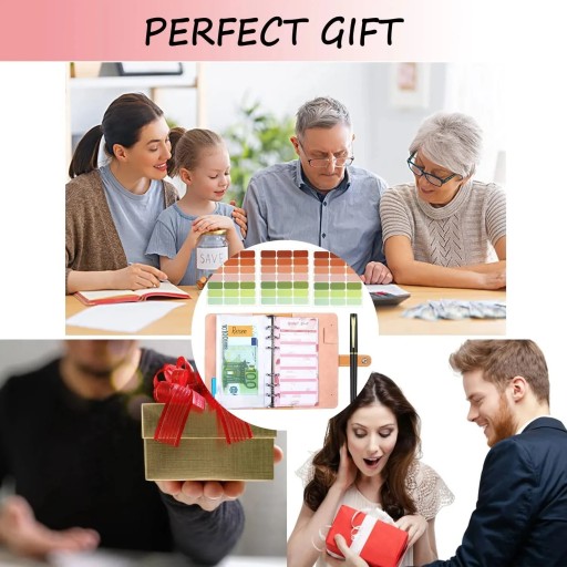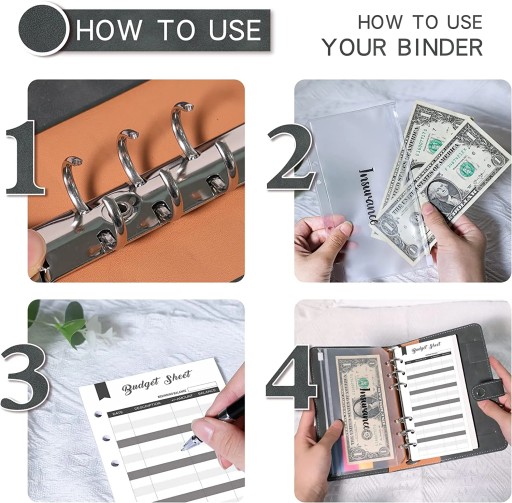A6 PU Leather Budget Binder Notebook with 6 Pieces Cash Envelopes Set Binder Pockets Money Budget Saving Bill Organizer