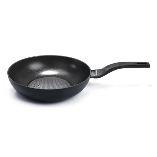 Podobnie, jak pozostałe naczynia z kolekcji wok ma aluminiowy korpus, a od wewnątrz pokryty jest powłoką PROTECTION BASE z mikrokryształami.