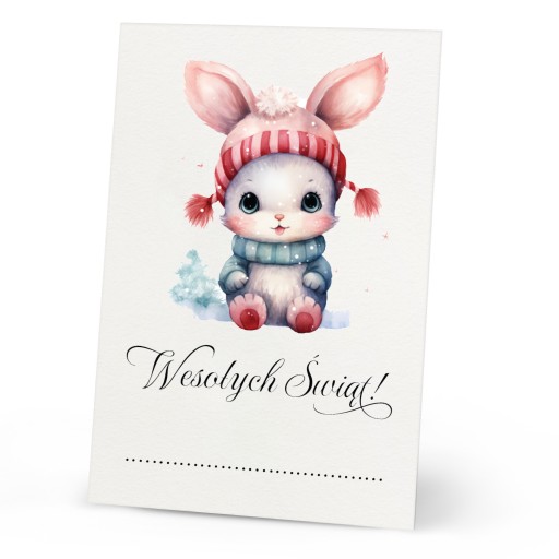 - jednostronny bilecik ~ 7,5 cm x 5 cm, wykonany na wysokiej jakości białym sztywnym satynowanym papierze o gramaturze 350 g/m2,