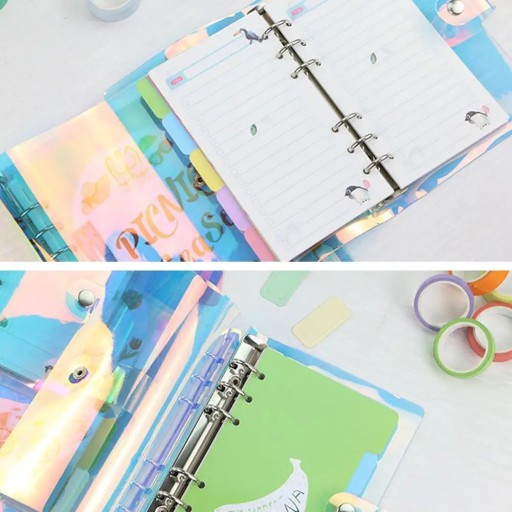 A6 Карманы на молнии ПВХ Радуга Лазерная прозрачная обложка для дневника для ноутбука