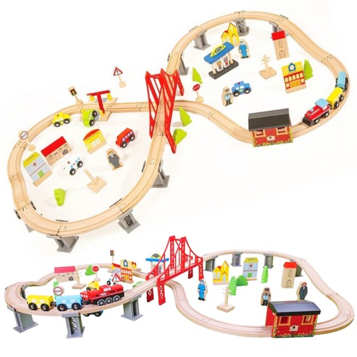 KOLEJKA DREWNIANA POCIĄG ZABAWKA DLA DZIECKA 70 elementów most + tunel