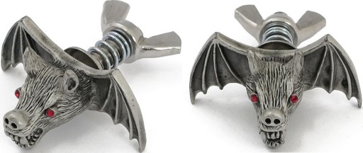 "Nietoperze" wykonane ze stopu cyny z ołowiem w połączeniu z rubinowymi oczami, to dyskretny detal, który wyróżni twój motocykl i podkreśli jego charakter.