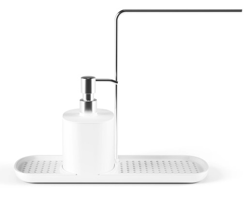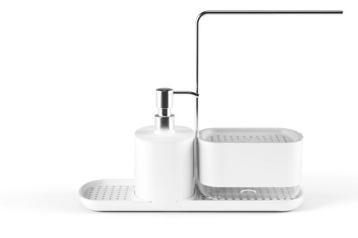- Dodatkowy pojemnik na mydło z intuicyjnym dozownikiem, zintegrowany z tacką ociekową oraz miejscem na druciak.