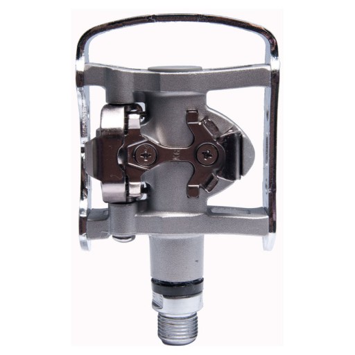 Bardzo solidne pedały jednostronne stworzone z myślą o turystach i amatorach chcących korzystać z roweru zarówno w specjalnych butach SPD jak i w zwykłym obuwiu. Solidna metalowa obudowa zapewnia wygodne podparcie dla stopy chroniąc jednocześnie mechanizm zatrzaskowy.