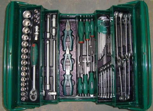 SKRZYNKA METALOWA 5-ELEMENTOWA ROZSUWANA Z 62 SZT. NARZĘDZI