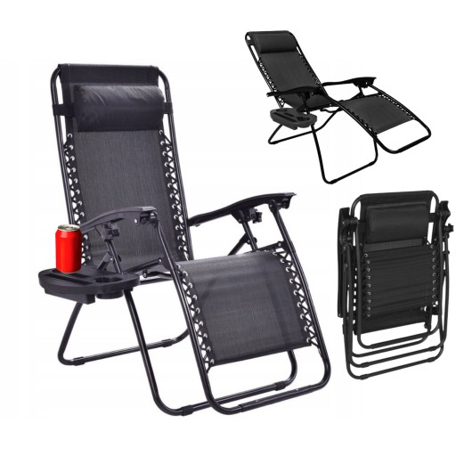▶SKŁADANY FOTEL LEŻAK WYGODNY ZERO GRAVITY PÓŁKA XL