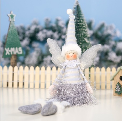 Siedzący anioł z wiszącymi nóżkami Wypełniony pluszem Dla stabilizacji pozycji stojącej w tułowiu posiadają piasek - co dodatkowo je obciąża Figurki ze sznurkiem - można je powiesić Waga: 56 g Wymiary: Wysokość maksymalna : 38 cm Szerokość: 11 cm