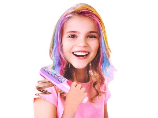 Znajdziemy tutaj aż 6 kolorów kredy: fioletowy, pomarańczowy, zielony, morski, różowy, niebieski; a także grzebyk i urządzenie do nakładania koloru na włosy. Aby uzyskać jak najlepsze efekty, w pierwszej kolejności należy zwilżyć włosy wodą.