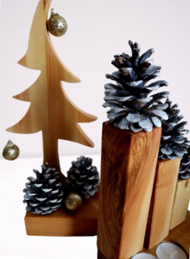 Stylowa kompozycja choinki z drewna to idealny pomysł na praktyczne udekorowanie Twojego domu.