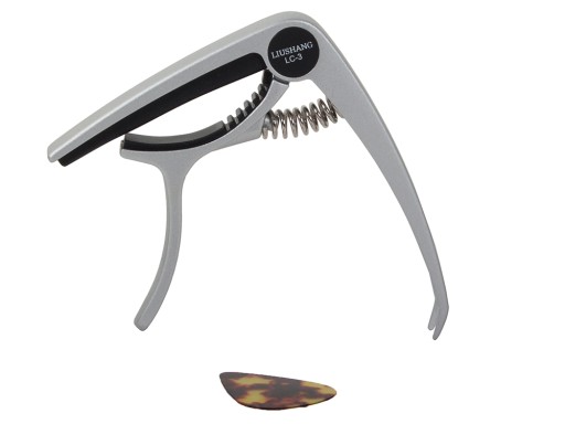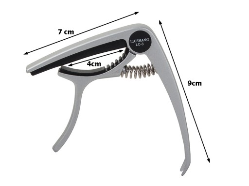 Kapodaster wysokiej jakości do gitary. Pozwala w bardzo łatwy sposób zmieniać tonację. Zakładany jest bezpośrednio na gryf gitary w bardzo prosty sposób, wystarczy go tylko rozchylić. Od środka wypełniony jest gumową podkładką dla zabezpieczenia podstrunnicy.