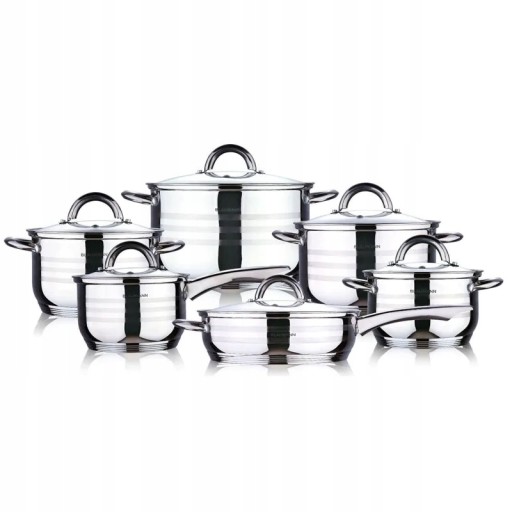 Garnki można używać na wszystkich rodzajach kuchenek, również na kuchni indukcyjnej.Nitowane uchwyty (polerowane).