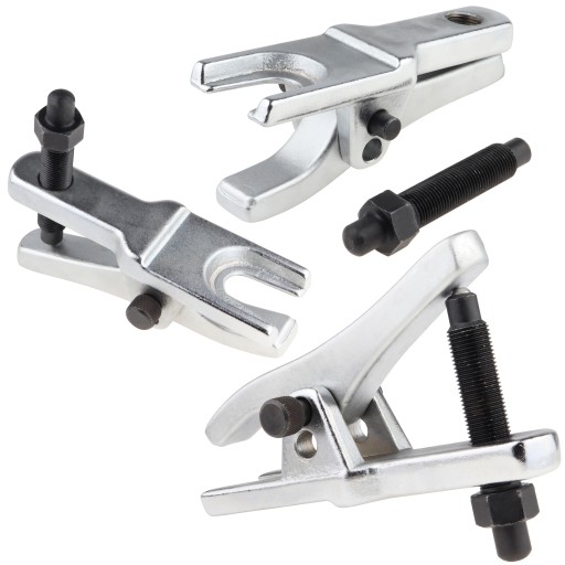 Prezentowany przez nas ściągacz idealnie nadaje się do ściągania przegubów kulistych, sworzni czy też drążków. Dużym atutem jest dwustopniowa regulacja wysokości ściągania mająca zastosowanie do większych aut osobowych i dostawczych. Wykonany z utwardzanej stali dzięki czemu nie musimy używać narzędzi do pobijania lub też udarowych. Ściągacz pracuje na zasadzie prasy śrubowej o drobnym gwincie. Nie uszkadza drążków i stabilizatorów.