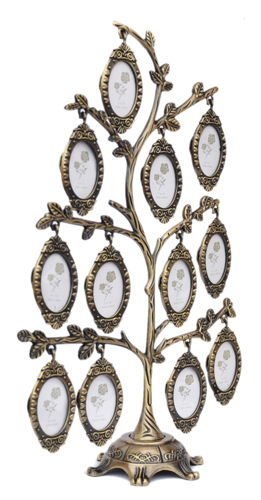 Ramka drzewko na dwanaście małych zdjęć. Drzewko w kolorze starego złota, ramki w kolorze starego złota.