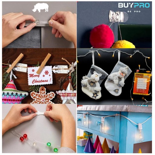 Haczyki przezroczyste samoprzylepne to wyjątkowe rozwiązanie do wieszania dekoracji świątecznych, kabli elektrycznych i oświetleniowych, girland, tkanin, skarpet prezentowych, ozdobnych sznurów oraz do tworzenia innych świątecznych aranżacji.